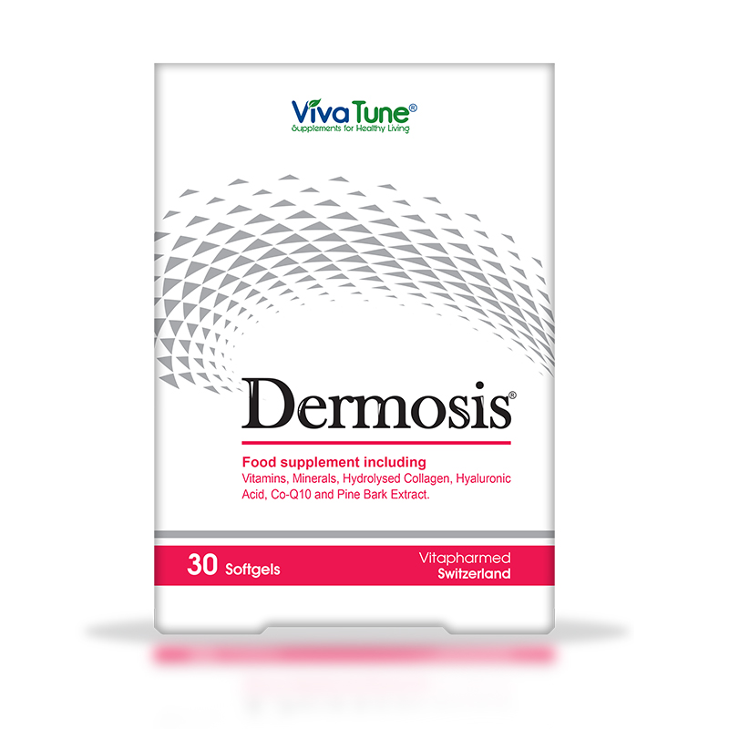 سافت ژل درموسیس ویواتیون حاوی کلاژن و هیالورونیک اسید به عنوان اجزا حیاتی ساختار بافت همبند، در ترکیب با عصاره پوست درخت کاج، ویتامین ها و مواد معدنی ضروری است که فرمول منحصر به فرد جهت حمایت از پوست، مو و ناخن فراهم می نماید. ویتامین A و روی در حفظ نرمال پوست نقش دارد. ویتامین C همچنین به تشکیل طبیعی کلاژن برای عملکرد طبیعی پوست کمک می کند. روی و سلنیوم به حفظ نرمال مو و ناخن ها کمک می کند. علاوه بر این، سلنیوم، روی، ویتامین C و ویتامینE در حفاظت از سلول ها در برابر استرس اکسیداتیو کمک می کند.